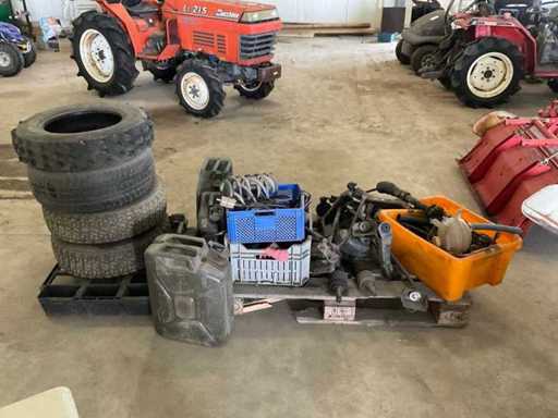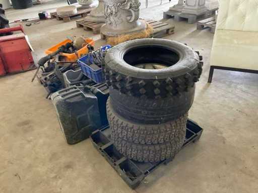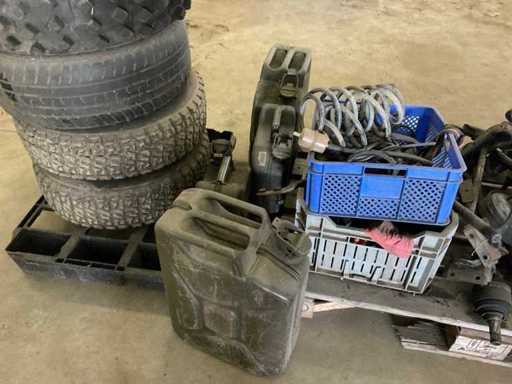 Składa się z: opony błotnej, 2x opony terenowej z felgą, 1x opony samochodowej, kanistrów, wałów napędowych, filtrów i węży.
