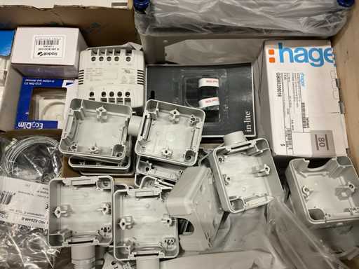 - o.a. schakelmateriaal, staaldraad ophangsysteem, noodverlichting, etc.