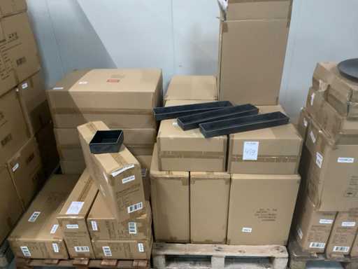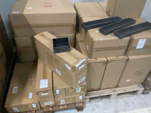 5 palet, w tym tace plastikowe, płyty dolne, tace, różne rozmiary, w tym palety