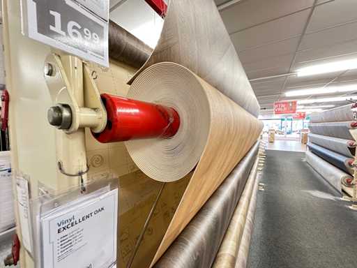 Ta część składa się z różnych rodzajów pokryć podłogowych na 10 regałach. Różne rozmiary i kolory. Z wyłączeniem racków.
