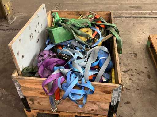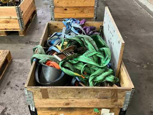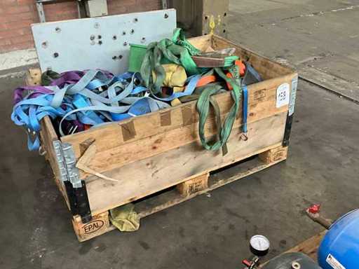 Partia poliestrowych pasków do podnoszenia i różne akcesoria