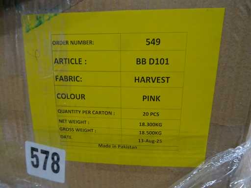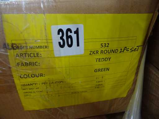 składała się z różnych pokrowców na pufę, pufy, poduszki ogrodowe. W różnych kolorach. Niektóre elementy zostały wyjęte z pudełka jako przykład.