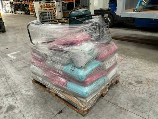 w workach po 25 kg / worek; około 25 worków; na palecie; w tym rozsiewacz soli;