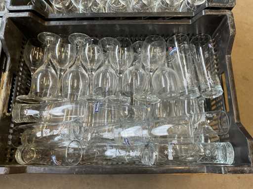 w tym szklanki do wina, piwa i herbaty, w tym plastikowe skrzynki.