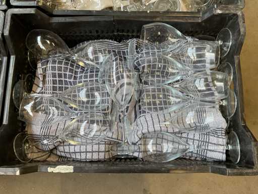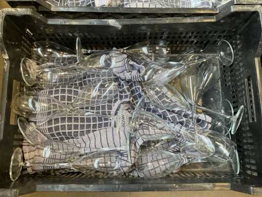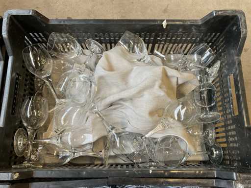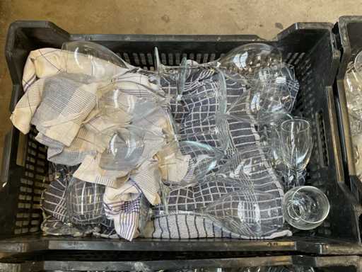 głównie kieliszki do wina, w tym skrzynki plastikowe.