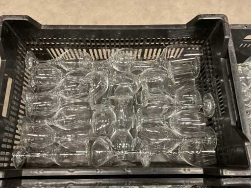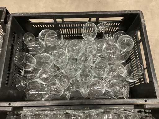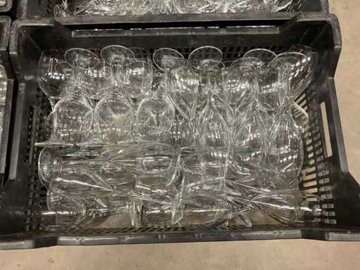 głównie kieliszki do wina, w tym skrzynki plastikowe.