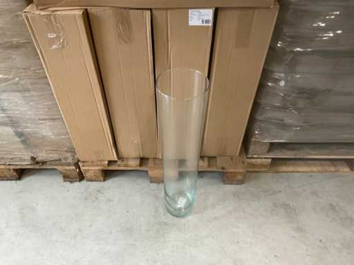 3 palety, różne rozmiary szklanych wazonów, w tym palety