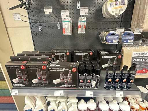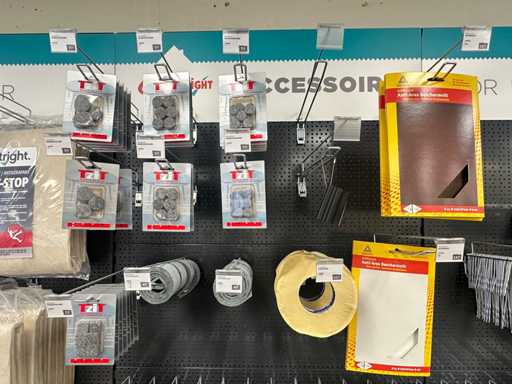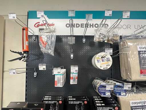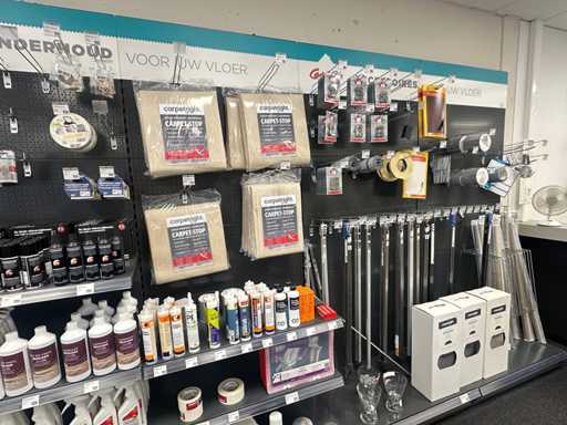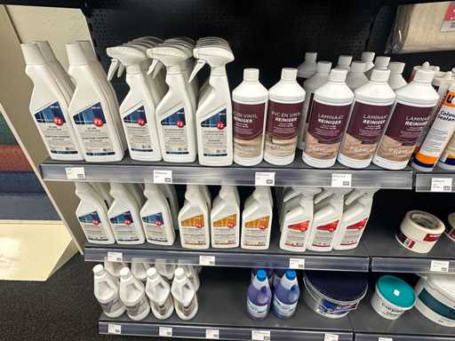 Ta partia obejmuje produkty konserwacyjne, podłogi, okładzinę na stopnie schodów, filc meblarski, listwy przypodłogowe i inne akcesoria. Z wyłączeniem racków.
