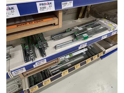 Składa się z: zawiasów fortepianowych, zatrzasków drzwi, różnych prowadnic szuflad itp