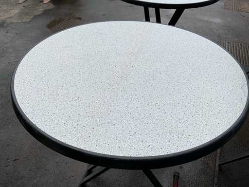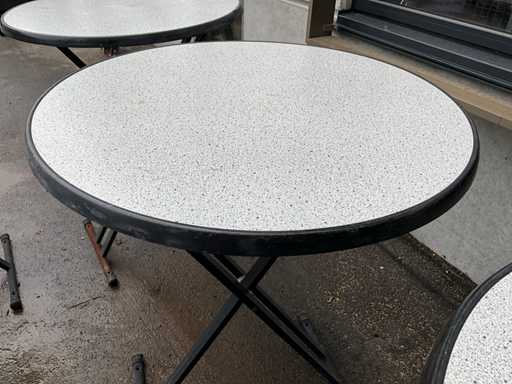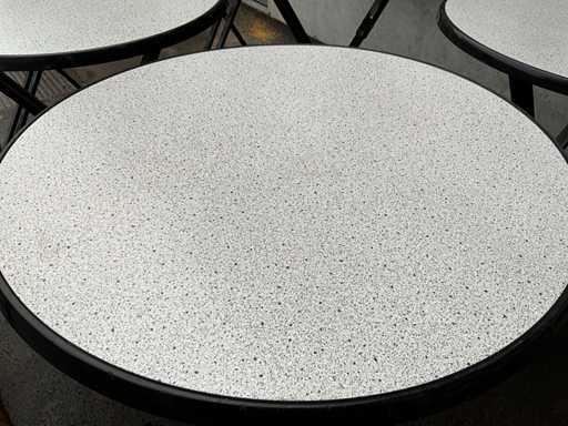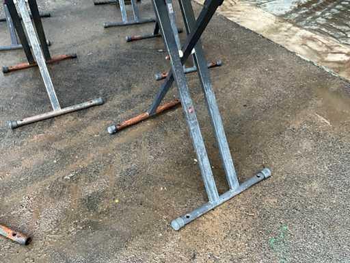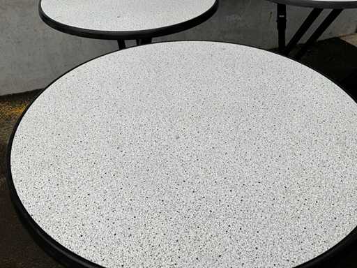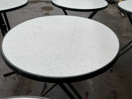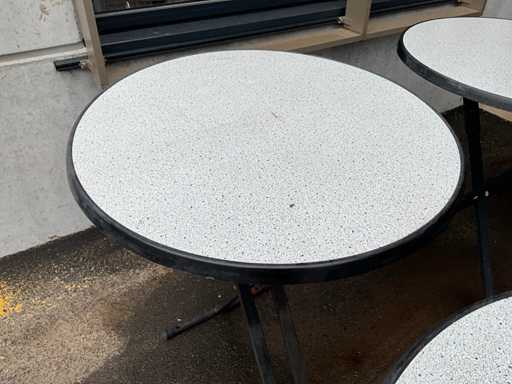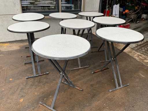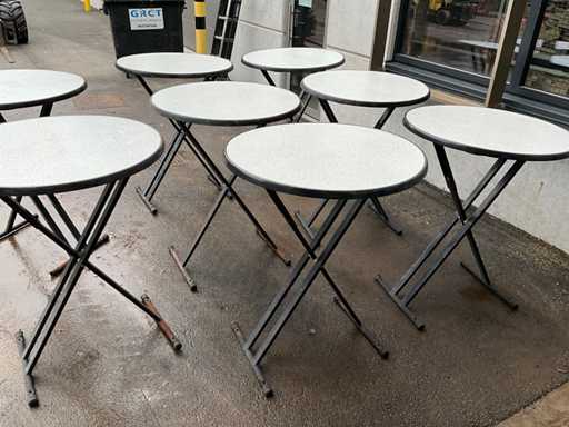 8 pieces of batch tables in used condition. Some legs have rust. 1 table is a bit broken on the side.
