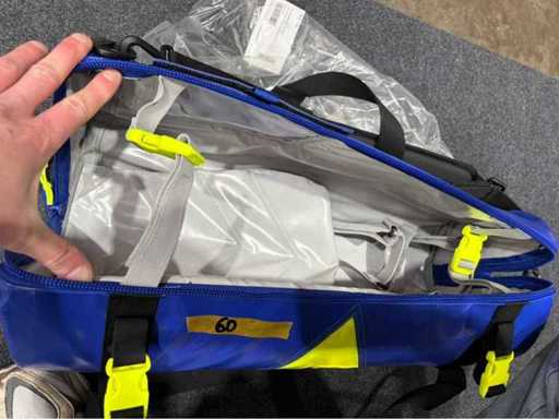 Professional Oxy bag of the PAX brand, specially designed for the safe reception and transport of medical oxygen cylinders in the emergency services. Internal straps for bottle fixation, waterproof and disinfectable material. Condition: mint condition, unused, incl. original foil.