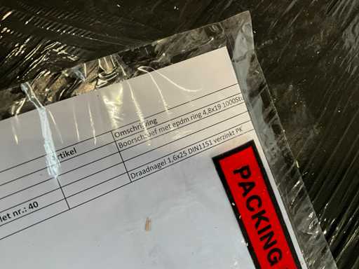 1 paleta gwoździ; nie sprawdzone pod kątem rozmiarów, liczb i kolorów; Paleta nie była uwzględniona w partii;