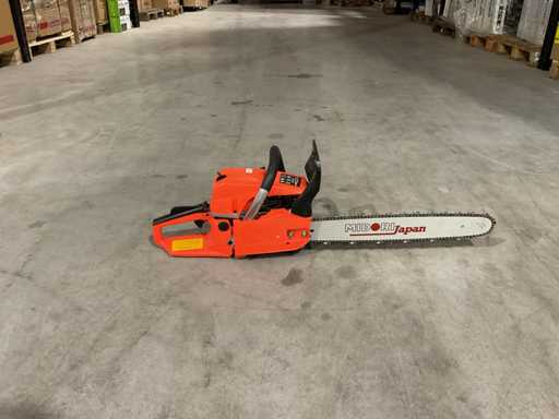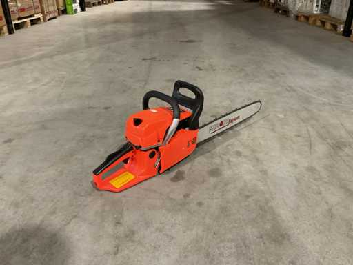 Wyposażony w 1x piła łańcuchowa; 1x Osłona ochronna brzeszczotu; 1x Miska do mieszania; Zbiornik paliwa : 550 ml; Zbiornik oleju: 260 ml; Pojemność silnika: 52 cm³; Prędkość maksymalna: 10 000 obr./min; Moc : 2,9 kW / 3,9 km; Prędkość bez obciążenia: 2800-3200 obr./min; Długość brzeszczotu : 52 cm; Nieużywany w pudełku