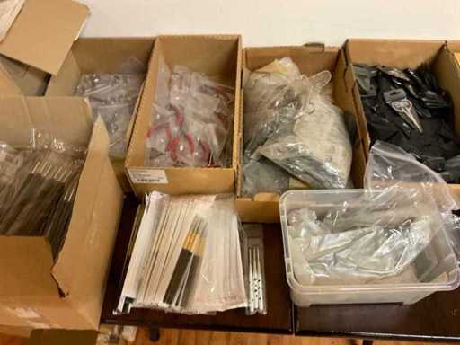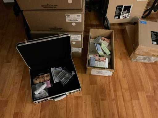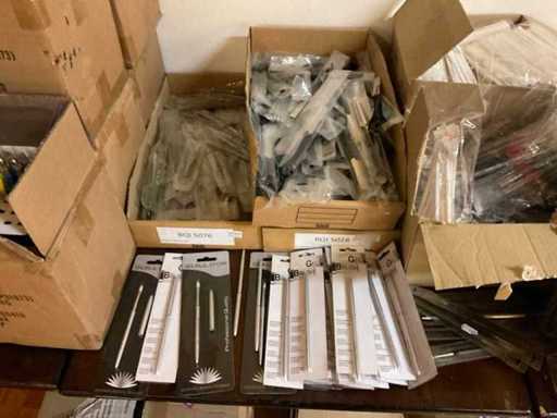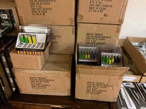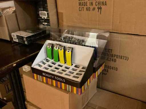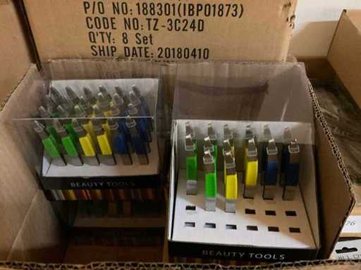 w tym obcinacze do paznokci; pęsety; frędzle; zestawy rzęs itp.; na trzech stołach