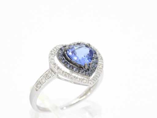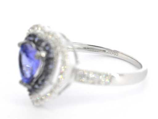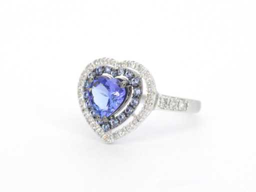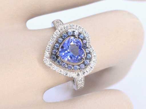 : Pierścionek z białego złota z diamentami i tanzanitem