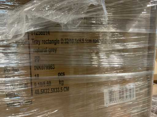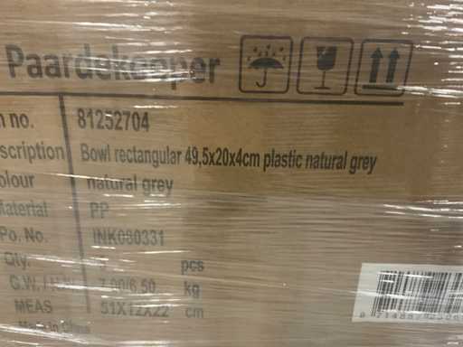 1 paleta donic w różnych rozmiarach, kolor naturalny szary, plastikowy, w tym prostokąt 32x10x5, miska prostokątna 49x20x4 cm itp., w tym paleta.