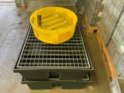 Wyposażony w podłogę z ocynkowanych listew. w tym 1 pojemnik na ropę