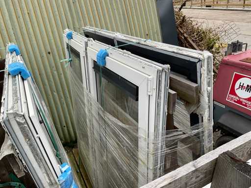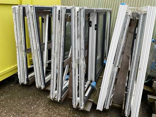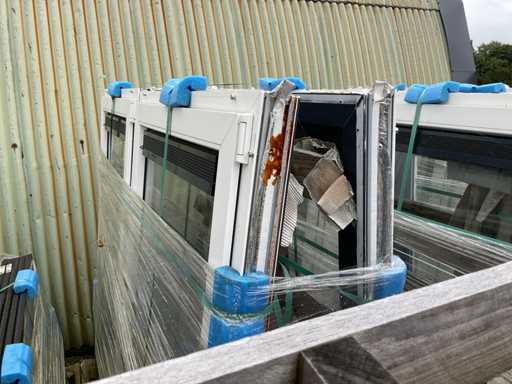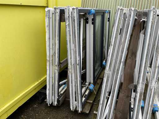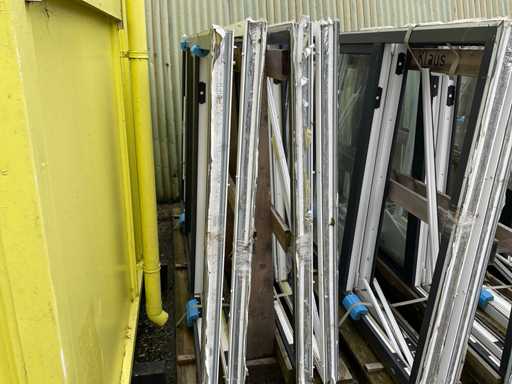 Dotyczy 9 wiaduktur z ramami i szybami, antracytowymi i białymi, 2x wiadukt z 8x 2470x1500x70mm z szybą obrotową pośrodku, oba boczne okna nie mają szyb, 1x wiaduch z 2x 2470x1500x70mm, takie same jak poprzednie z 10 białymi ramami pokrywowymi, 1x wiadukt z 10x szkłem dla poprzednich ram, 3x wiaduch z 6x ramami 1800x1500x70mm z szybami obrotowymi i szybą, 1x wiadukt z 20 białymi paskami pokrywającymi, wiadukt z 2x szkłem