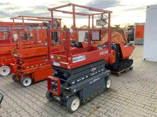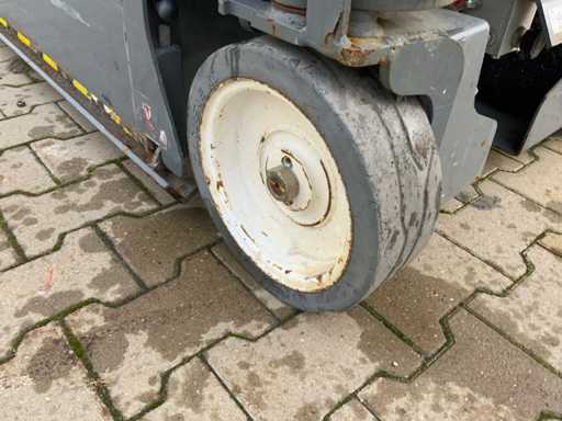Stosowanie: Wewnątrz; wysokość podłogi platformy 5800 mm; rozmiar wysuwanej platformy ok. 2500x650 mm; wewnętrzna ładowarka akumulatorów 230 Volt; kontrola klatki; wysokość transportowa około 1750 mm; warunki pracy;