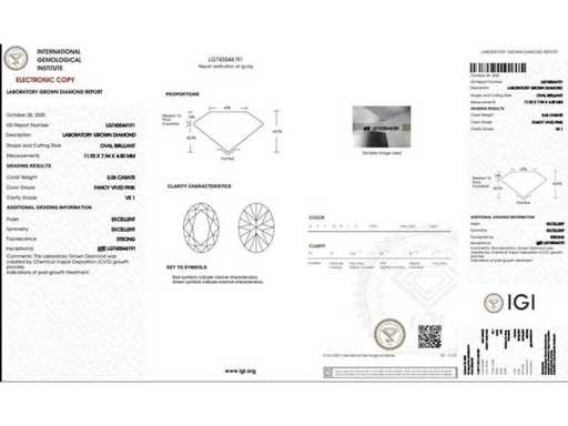 Ekskluzywny platynowy pierścionek 950 Rozmiar pierścienia - 57 EU / 17 IT / 8 US Numer raportu IGI: LG743544191 Kształt: owalny szlif brilantowy Waga karatu głównego kamienia: 3,06. Kolor: Fancy Vivid Pink Jasność: VS1 Symetria: doskonała Kamienie boczne - 0,52 karatu Całkowita ilość karatów - 3,58 Oglądanie po wcześniejszym umówieniu
