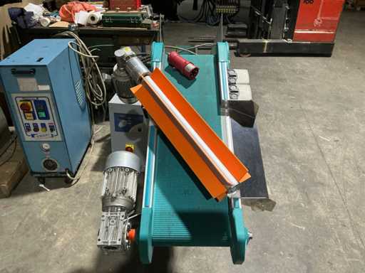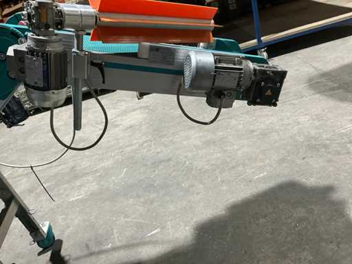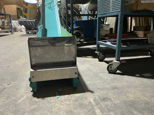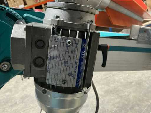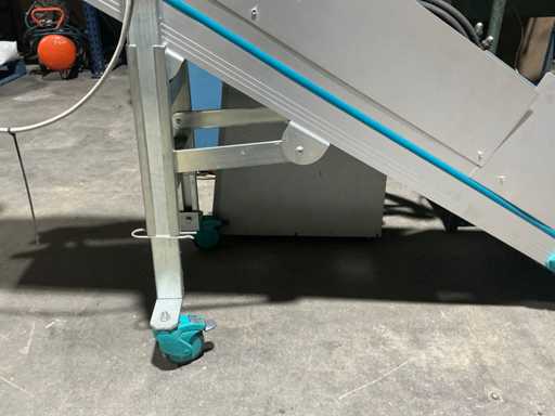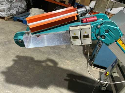 Zamontowany na ramie regulowanej wysokości z kółkami, bocznymi prowadnicami, górnym spadkiem wylotowym oraz zintegrowanym napędem przekładni