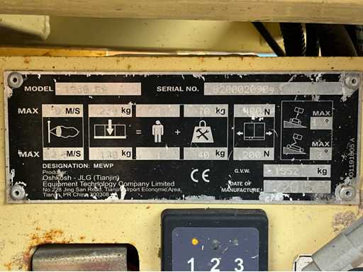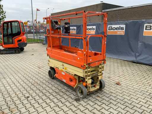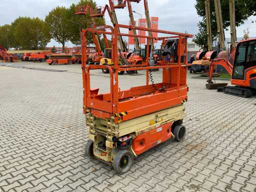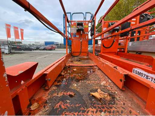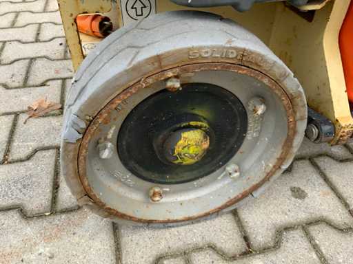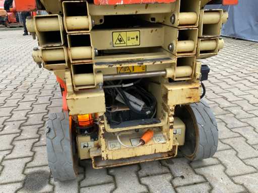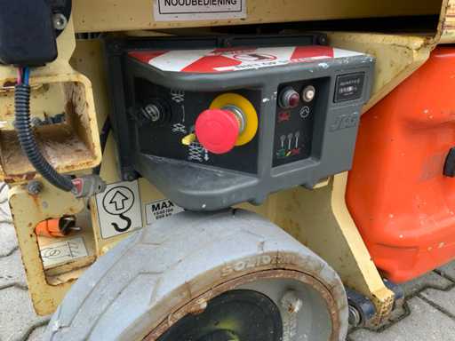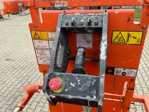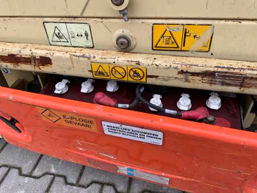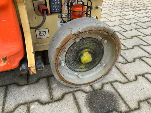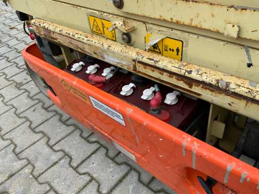 Zastosowanie: wewnątrz i na zewnątrz; wysokość podłogi platformy 5700 mm; rozmiar wysuwanej platformy ok. 2750x750 mm; wewnętrzna ładowarka akumulatorów 230 Volt; kontrola klatki; wysokość transportowa około 1750 mm; Stan pracy, baterie należy wymienić