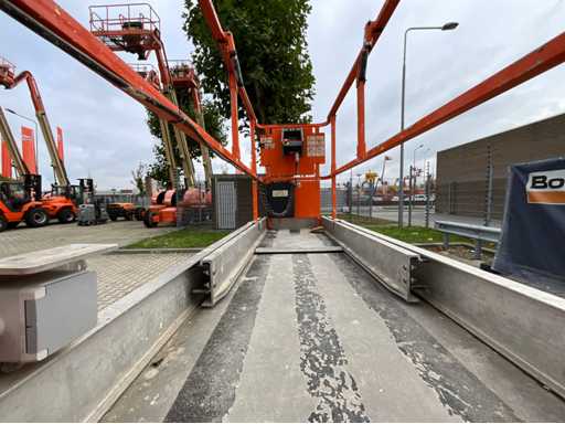 Wysokość podłogi platformy 6100 mm; rozmiar wysuwanej platformy ok. 3100x670 mm; wewnętrzna ładowarka akumulatorów 230 Volt; kontrola klatki; Platforma przyłączeniowa zasilania 230 V; wysokość transportowa około 1800 mm; Warunki pracy