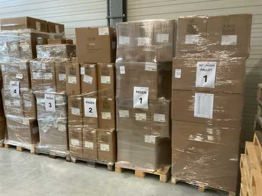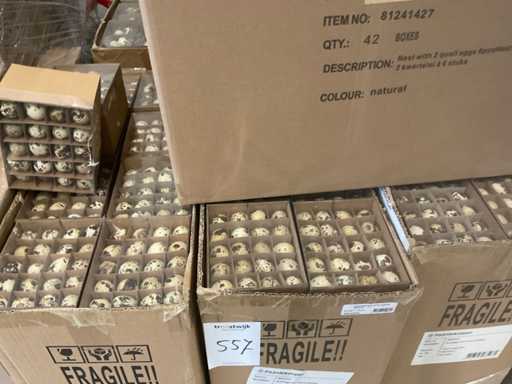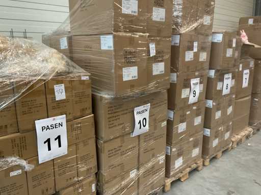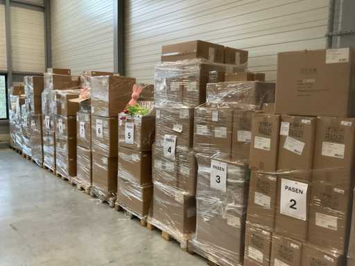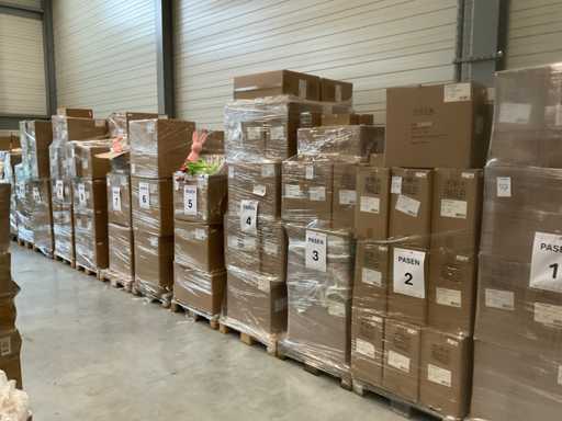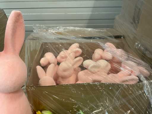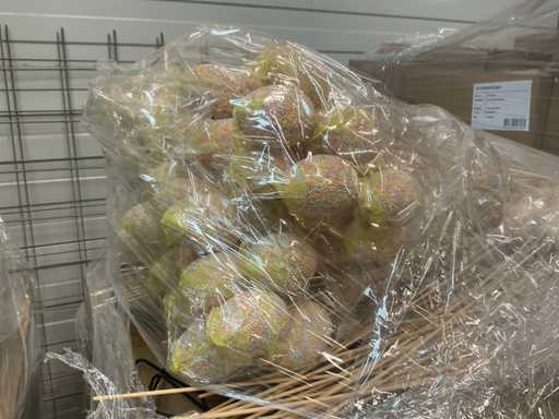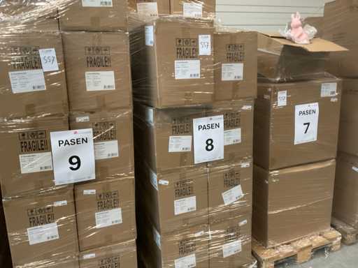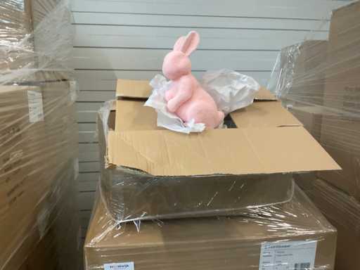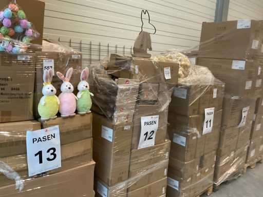 14 palet, różne artykuły wielkanocne, w tym dekoracje, różne kolory jajek wielkanocnych, zajączki wielkanocne, w tym palety