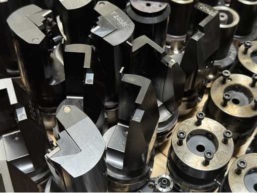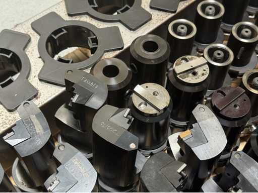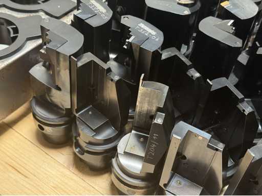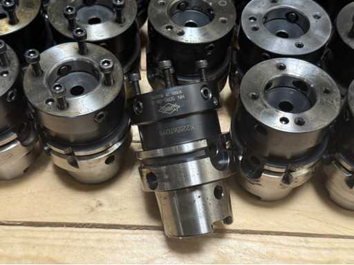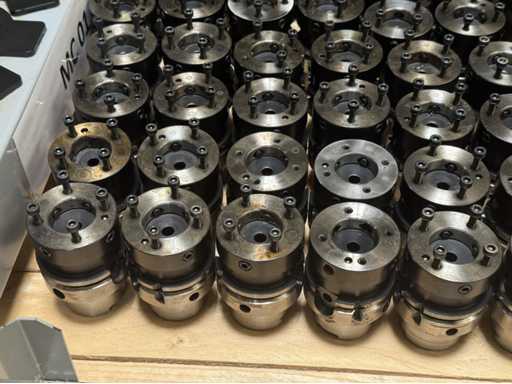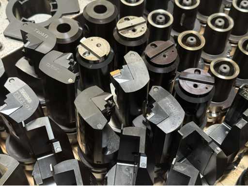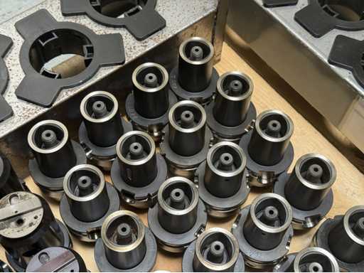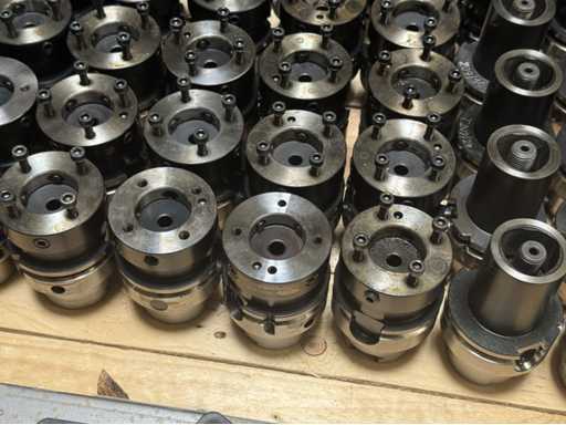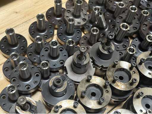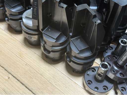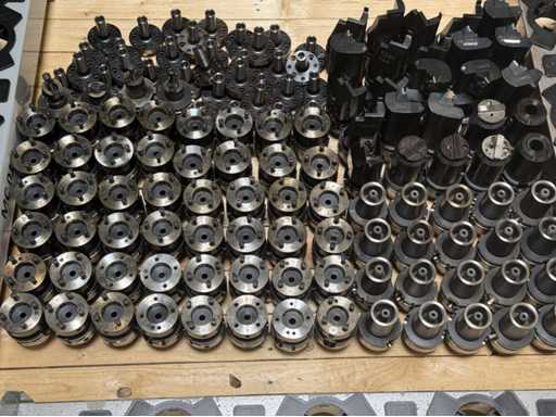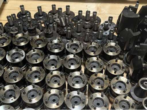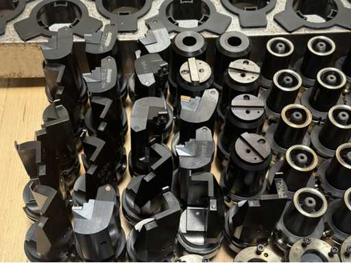 Large assortment of HSK-A63 tool holders in different designs incl. shelf with slots, see photos for more details