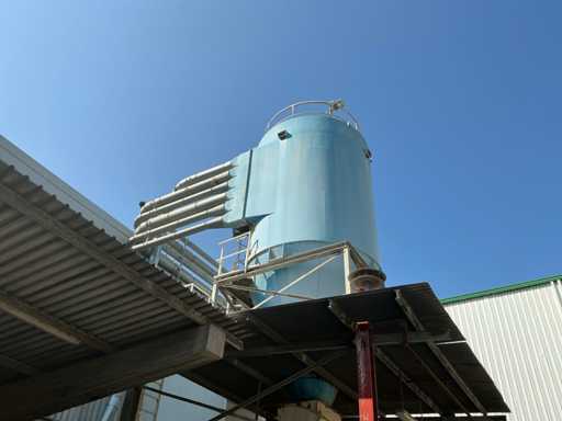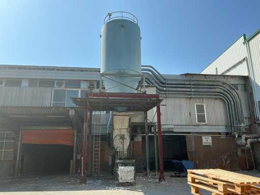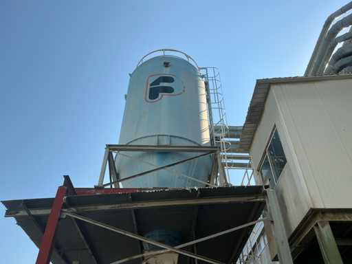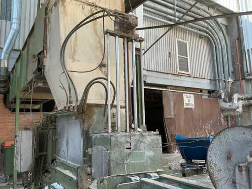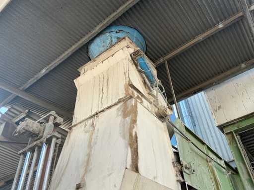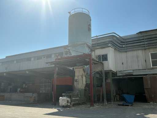 - Zestaw składający się z prasy zamkniętokomorowej, pionowego leja zasypowego i górnego metalowego silosu.