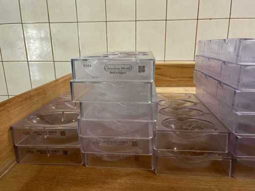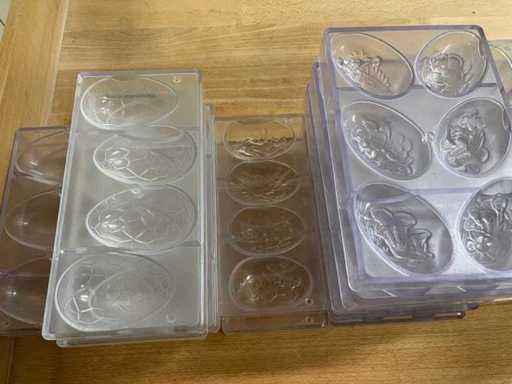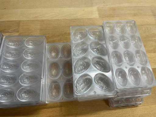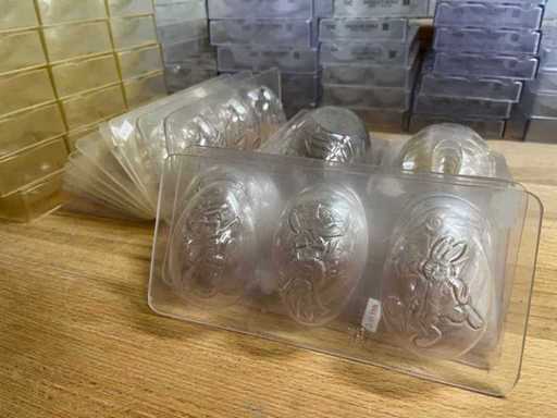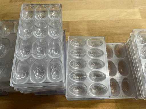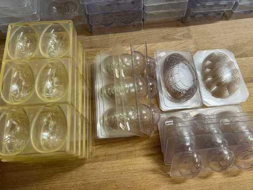 Rozległa kolekcja profesjonalnych form czekoladowych z poliwęglanu do produkcji jajek wielkanocnych i pustych czekoladowych figurek.