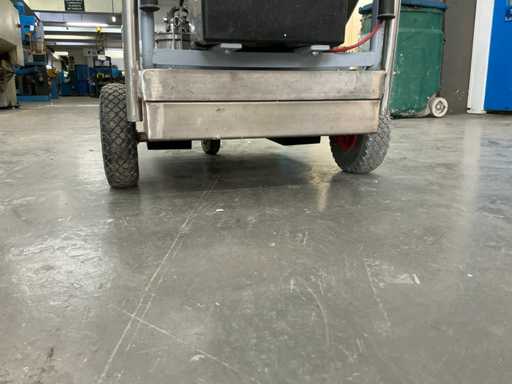 - Mobilna konstrukcja na metalowym wózku z kołami pneumatycznymi.