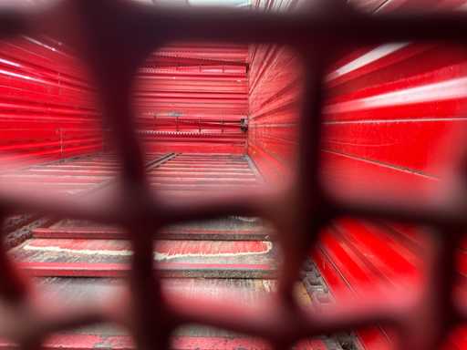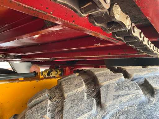 wyposażony w oś kierowniczą, sprzęgło kulowe K80, wymuszone sterowanie, zawieszenie na drążkach, wałki rozdzielające napędzane PTO, klapy pokrywowe, podwozie tandemowe, opony 710/50R26.5, światła robocze,
