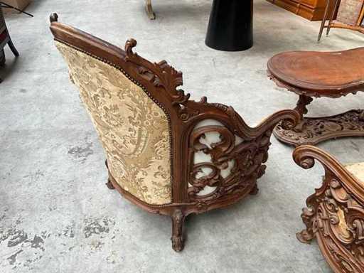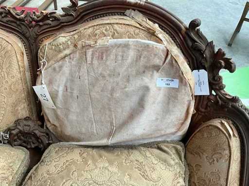 Składa się z: 1x 2-osobowej sofy 77x160x97cm, 1x sofy 82x88x97cm, 1x stolika kawowego 103x53x53cm