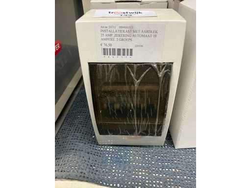 5x pusta puszka instalacyjna dla czterech modułów, 1x puszka instalacyjna z wyłącznikiem uziemiającym przed przeciekiem, 1x sterownik bezpieczników