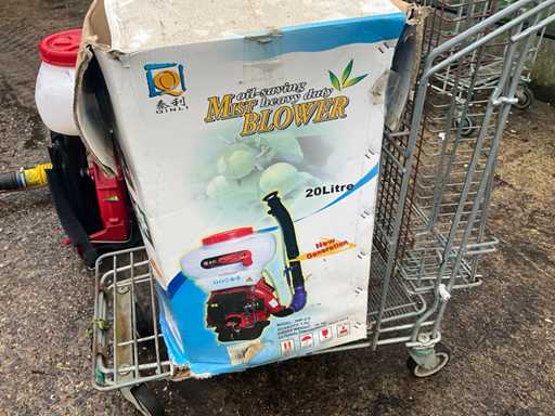 This powerful gasoline-powered mist blower is ideal for misting crop protection products, fertilizers or disinfectants in horticulture, agriculture or orchards - set of 2 new mist blowers, never used.