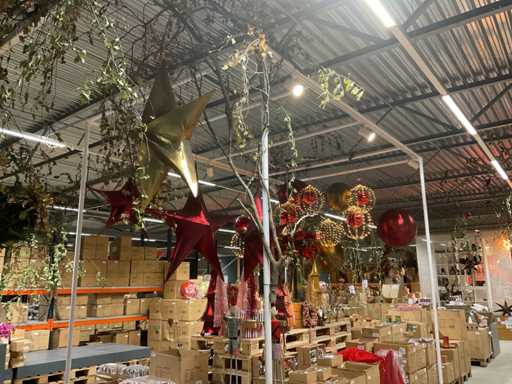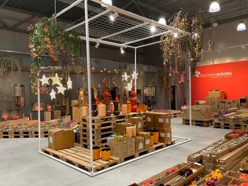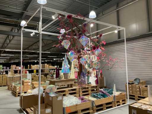 Stalowa rama rurowa sześcian wyposażona w siatkę drucianą ze stali, wyposażona w 6 punktów świetlnych i ozdobną gałąź z bombkami choinkowymi