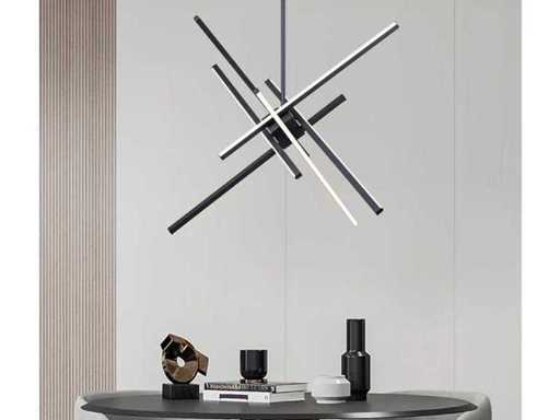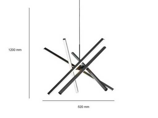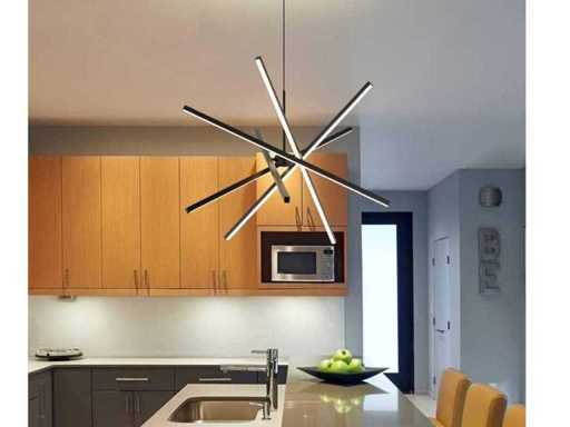 Suitable for the living room, kitchen, hallway or bedrooms, but also suitable for reception areas, offices, conference places, the showroom. This pendant lamp is equipped with diffuse opal LED light sources and gives warm white light which is suitable in both residential and business spaces. Includes flexible suspension set, adjustable in height and each light source can also be positioned separately. Product features: Number of light sources: 5. Dimension approx.: 800 mm x 1400 mm. Light beam approx 5 x 135 degrees. Watt: Light color: 3000K Warm white. Connection: 230 Volt. Color: Black, Finish: Matte Special features: This is a new product