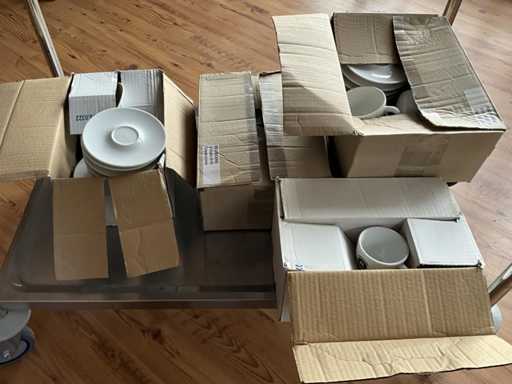 OSTROŻNOŚĆ! Dużo dotyczy tylko naczyń, a nie innych przedmiotów na zdjęciach. Partia jest dostarczana osobno, kupujący musi zapewnić wystarczający materiał opakowaniowy. Naczynia w pudełku znajdują się na drugim piętrze.