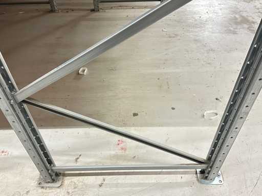 Z wyłączeniem treści. Słupki mają wymiar 110x300 cm (WxH). Belki mają długość 278 cm, a całość wyposażona jest w półki w różnych rozmiarach.
