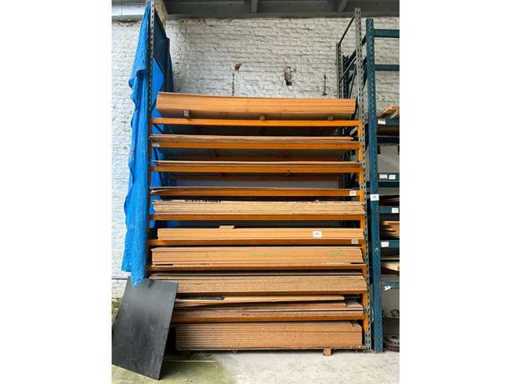 W tym 2x pionowe 90x435cm, wyposażone w 18 belek 260cm + 2x pionowe 100x420cm, wyposażone w 12 belek 270cm + rozmontowany rack z 2x pionowymi 100x210 oraz 18 różnych belek.