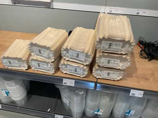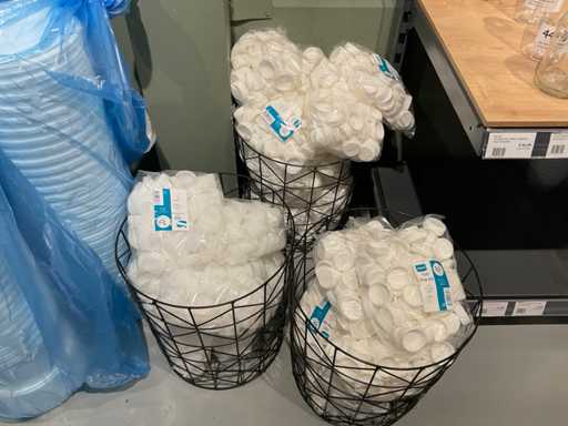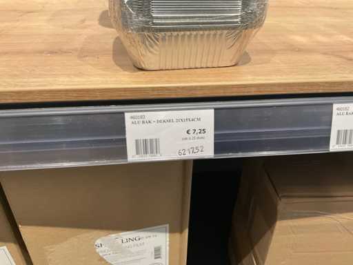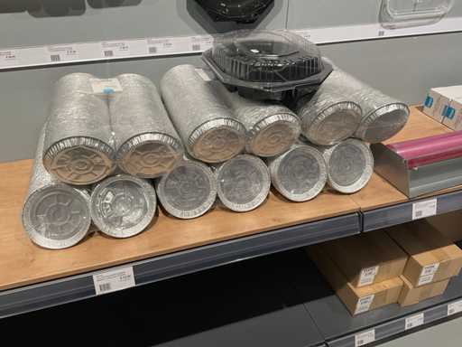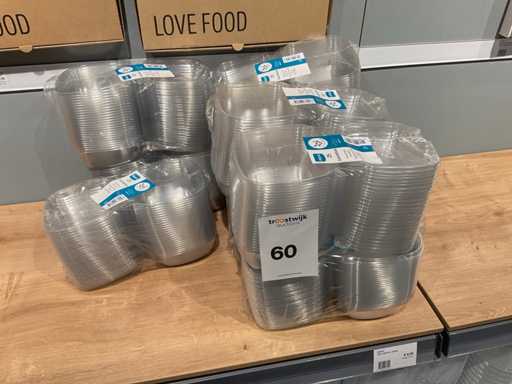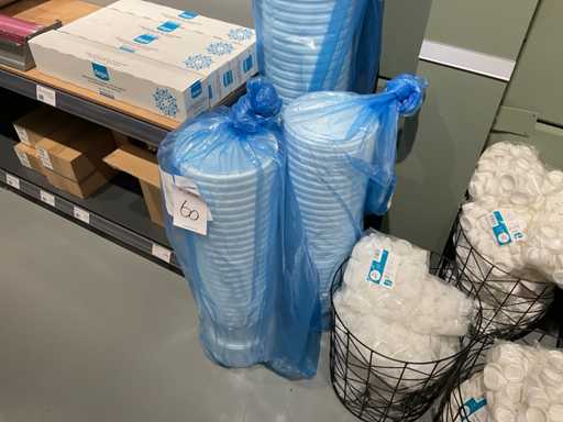 Różne materiały opakowaniowe, w tym różne pudełka na ciasta, tace aluminiowe, folia spożywcza, kubki, tace, butelki itp. Z wyłączeniem rusztowań i działek od 61 do 63