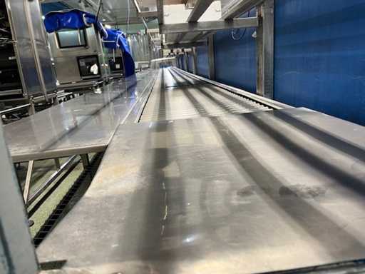 Roller conveyor belt after weighing anatomical cuts