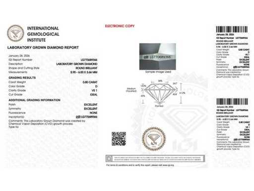 Round Diamond - 0,80 karatu - certyfikat IGI