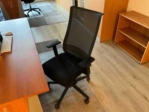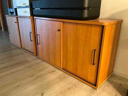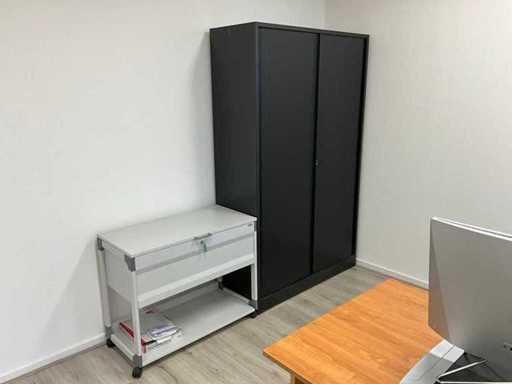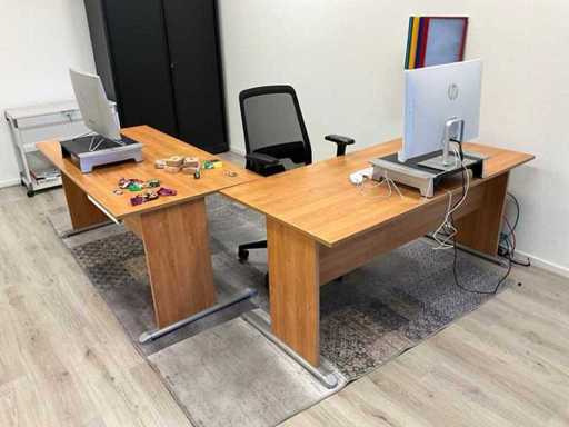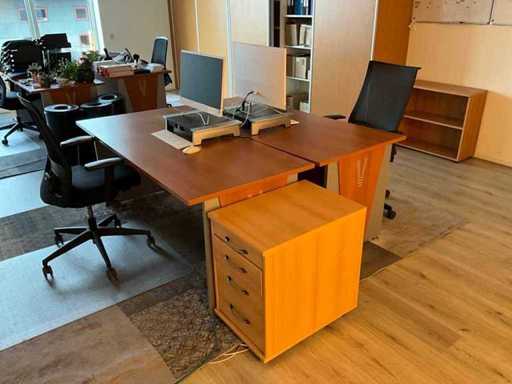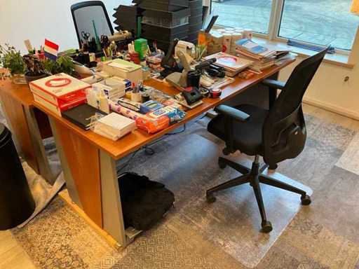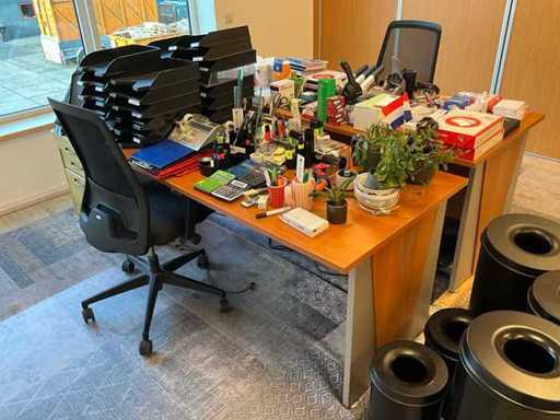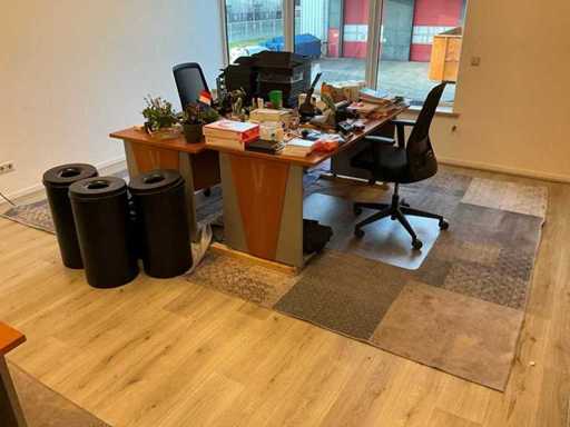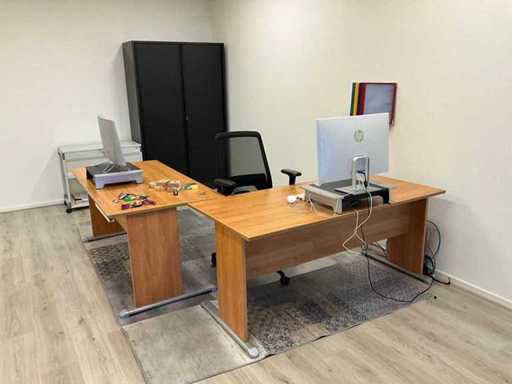Składa się z: 6 drewnianych biurek, 5 krzeseł biurowych, 3 dywanów, różnych artykułów biurowych, 2 komod, tablic suchościeralnych, drewnianej szafki, zestawu stolików bocznych z roślinami, dekoracji ściennej, trwałej mobilnej szafki na akta oraz szafki z drzwiami rolkowymi Ahrend; w tym 2x drewniana szafka na korytarzu