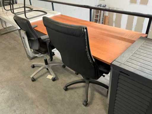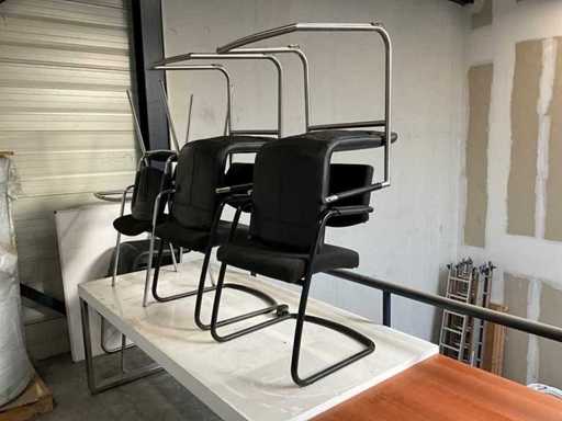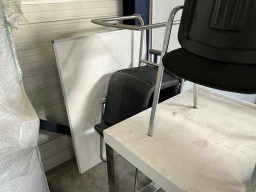 Składa się z: 2 krzesła biurowego, 8 krzesła konferencyjnego, tablicy suchościeralnej, plastikowego pudełka do przechowywania, 1 drewnianego stołu biurowego o rozmiarach 80x180cm oraz drewna/metalu ze stołu jadalnego 95x210cm