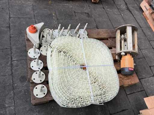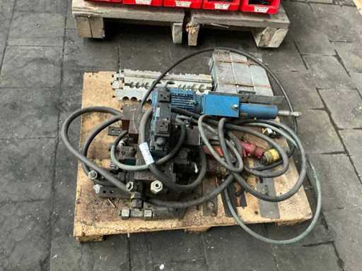 W tym silnik elektryczny z cylindrem, złączki rur, plastik, gumowe pierścienie. Na 3 paletach.