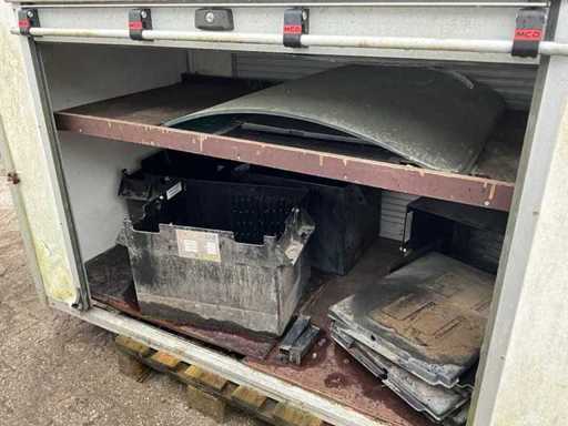 Składa się z: wymiary skrzyni bagażowej: H122xW130xL245cm i H120xW110xL195cm, opon, kierownicy, oświetlenia, sterownika silnika, drzwi, zderzaków itp