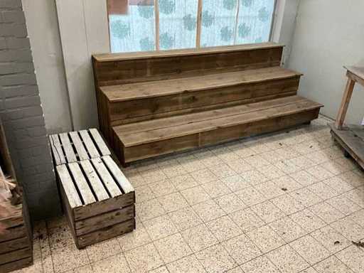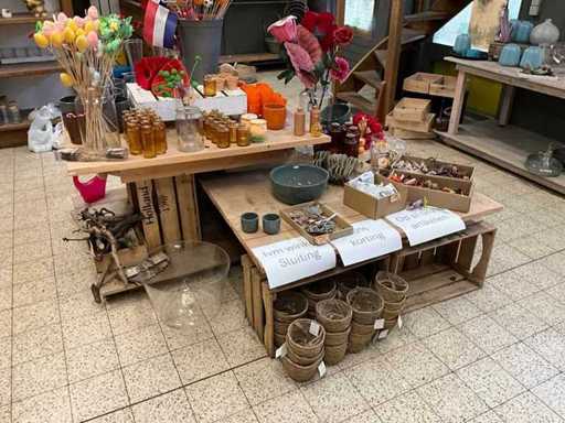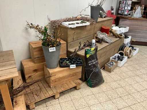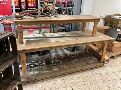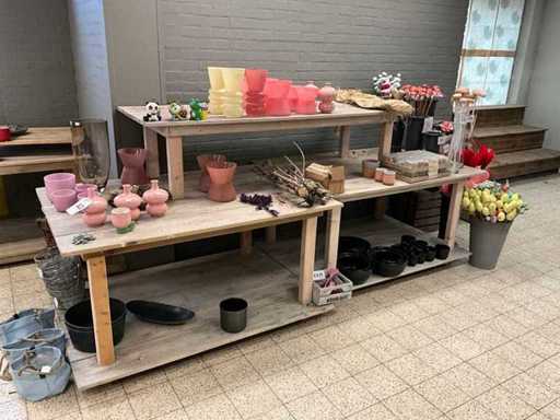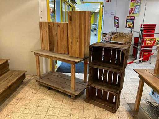 W tym drewniane stoły; ekspozycje i stojaki; Materiały dekoracyjne nie uwzględnione