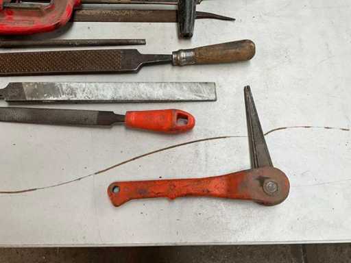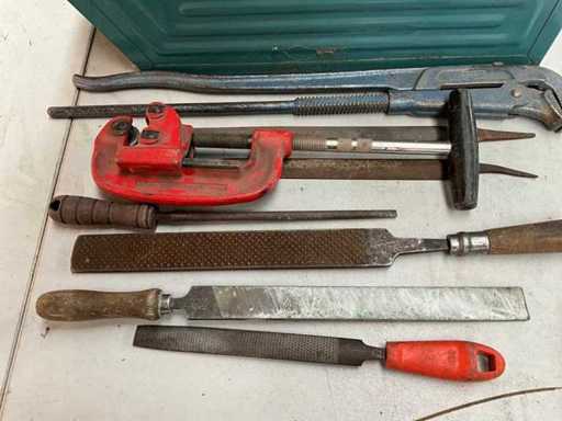 W tym pilniki, nożyce do rur i szczypce w stalowym pojemniku